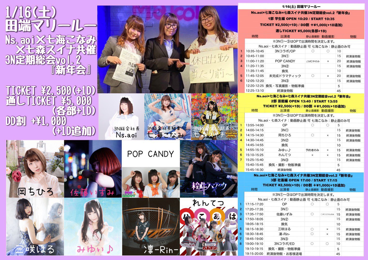 1/16(土)Ns.aoi×七海こなみ×七森スイナ共催 3N定期総会vol.2『新年会』