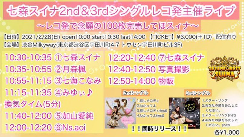 2/28(日)七森スイナ2nd&3rdシングルレコ発主催ライブ