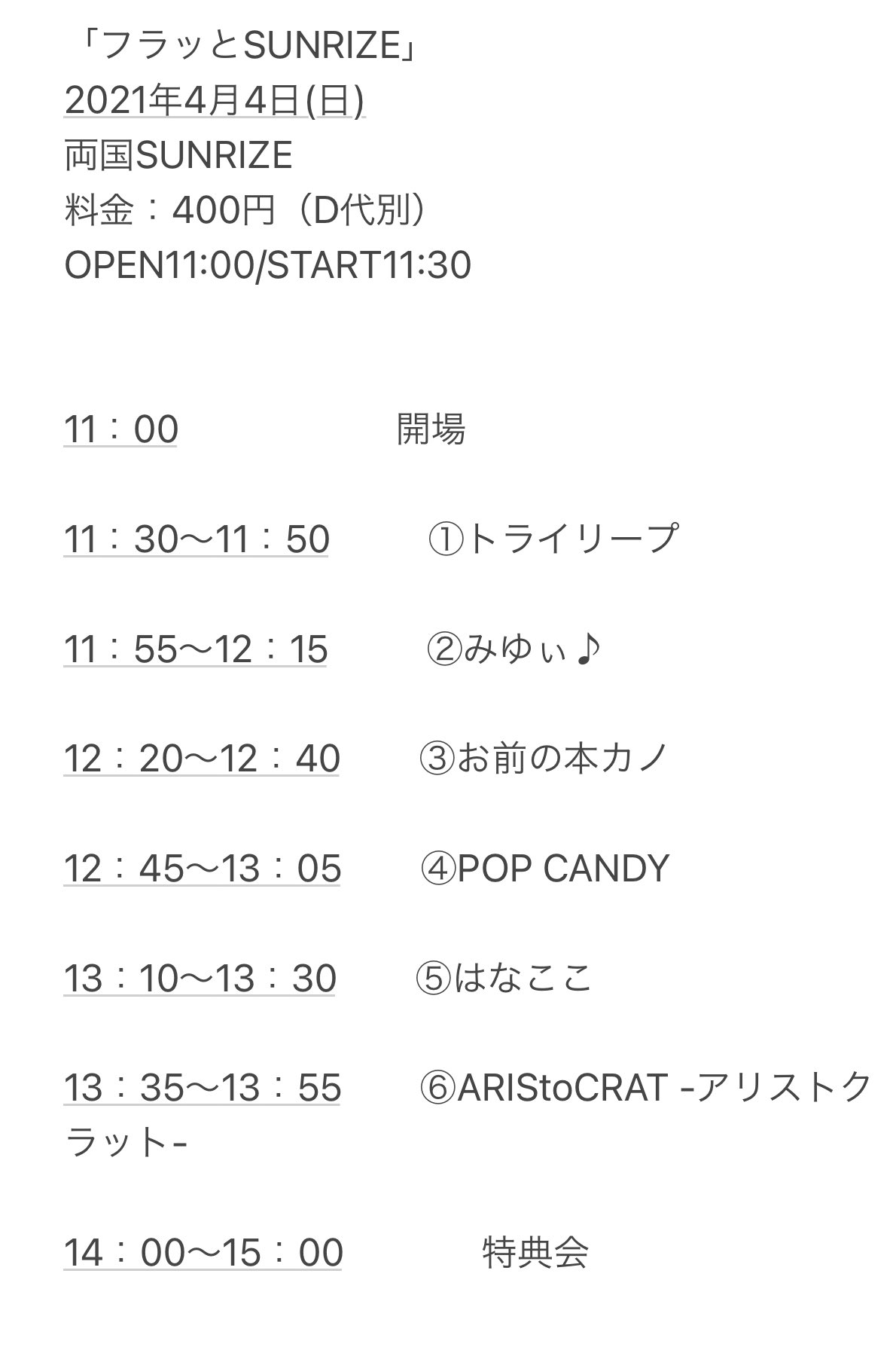 特典会 14:00~15:00