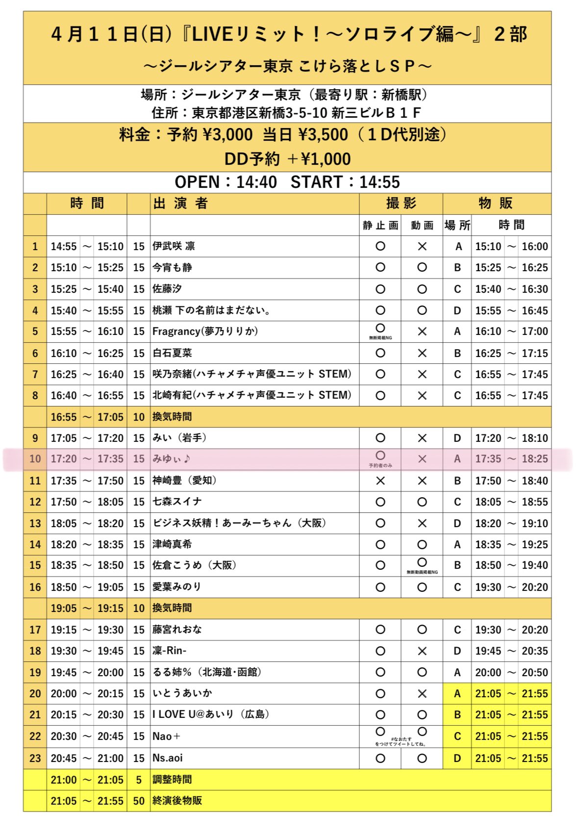 4/11(日)LIVEリミット!〜ソロライブ編〜2部
