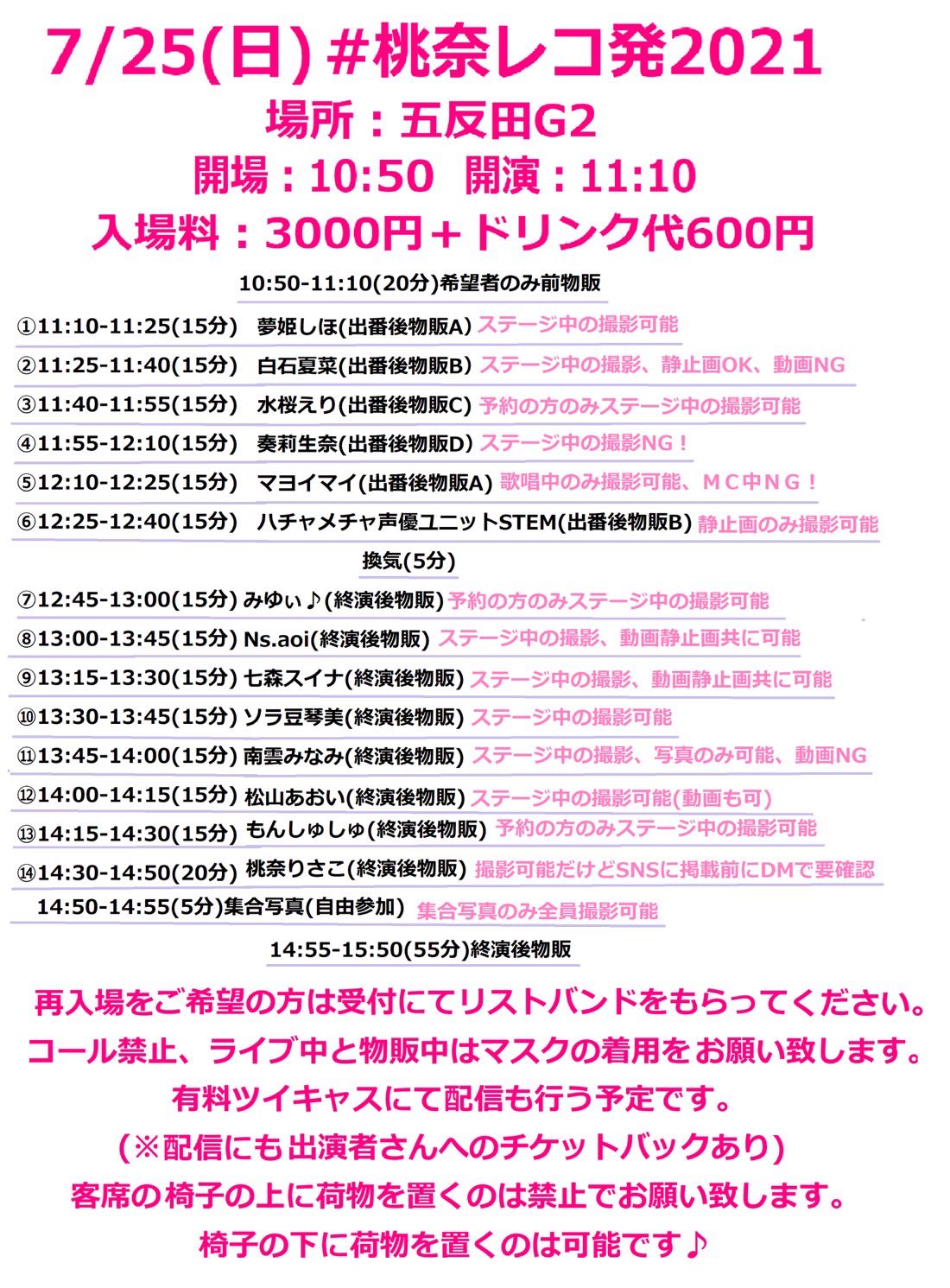 7/25(日)桃奈レコ発2021 五反田G2