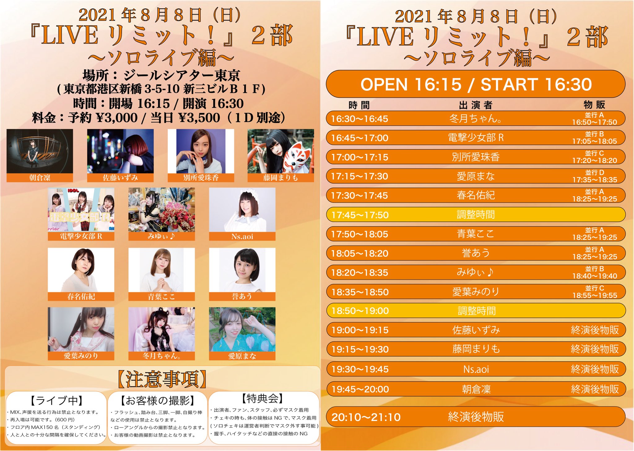 8/8(日) LIVEリミット!2部〜ソロライブ編〜
