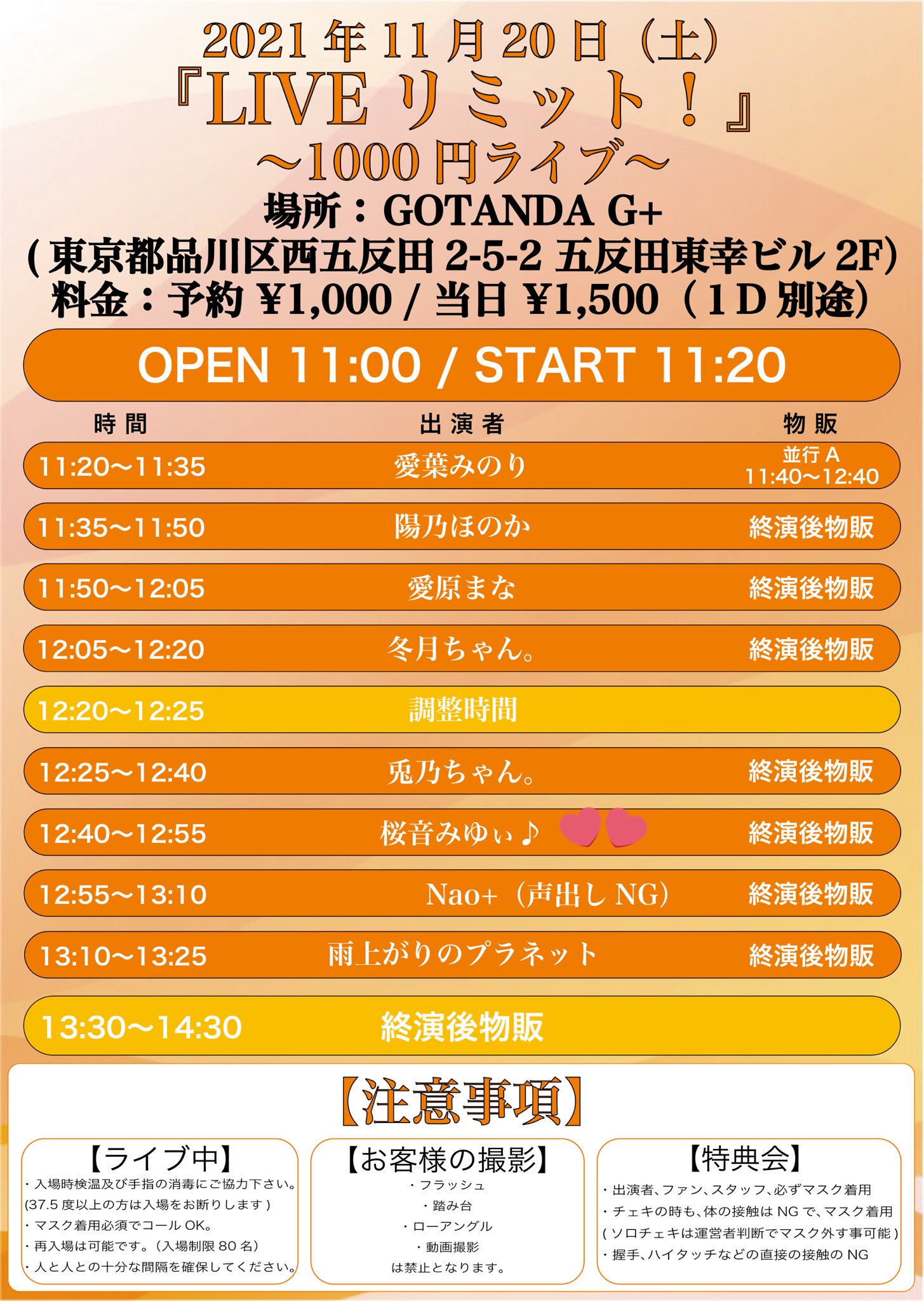 11月20日(土)『LIVEリミット!』 〜1000円ライブ〜
