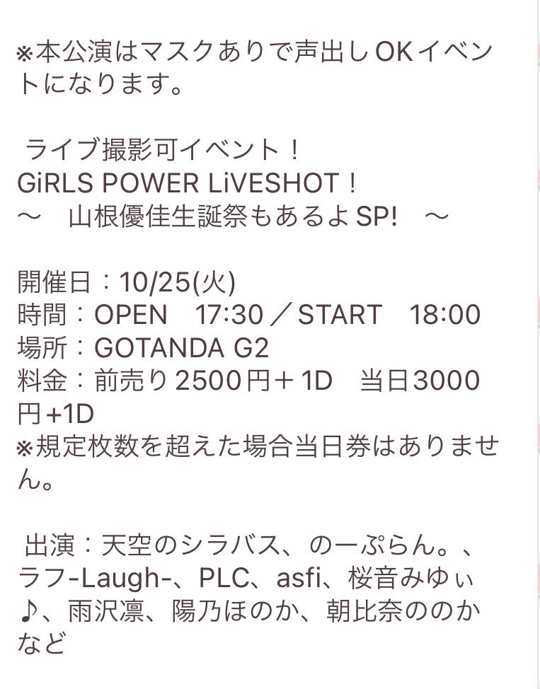 10/25(火)GiRLS POWER LiVESHOT! ~山根優佳生誕祭もあるよSP!〜
