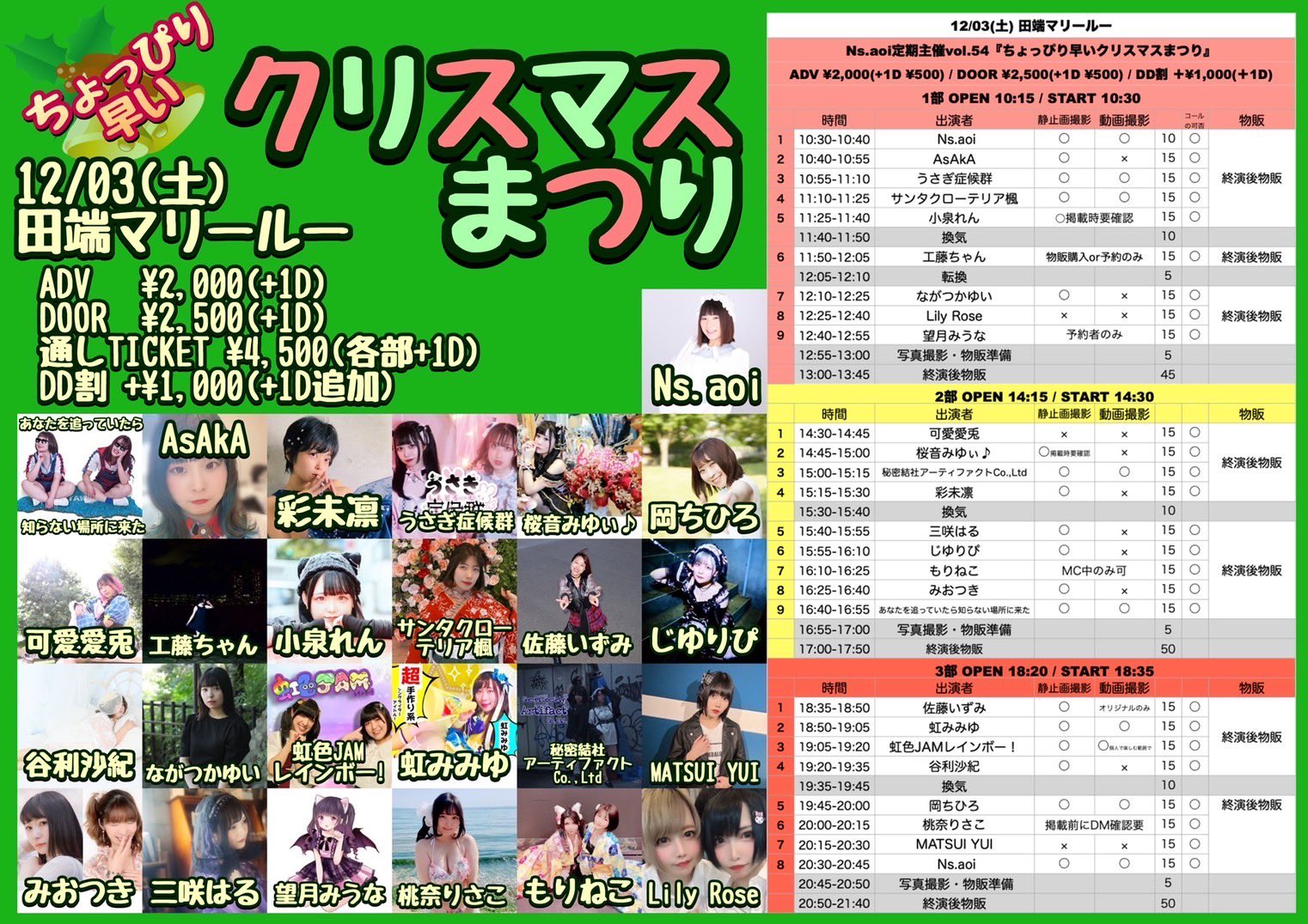 12/03(土)Ns.aoi定期主催vol.54 『ちょっぴり早いクリスマスまつり