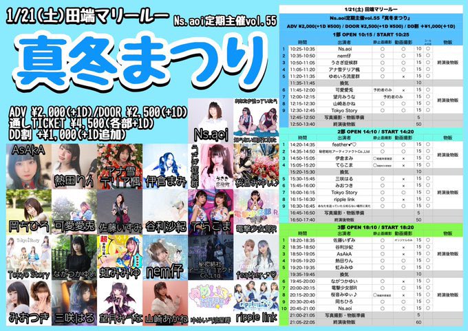 1/21(土)Ns.aoi定期主催vol.55 『真冬まつり』3部