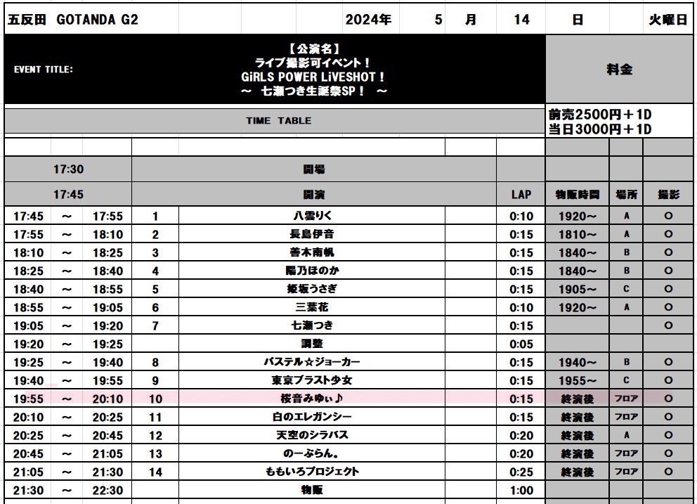 5/14(火)GiRLS POWER LiVESHOT! ~ 七瀬つき生誕祭SP! ~
