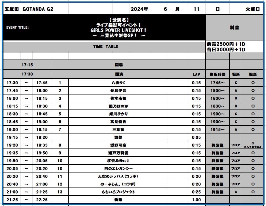 6/11(火)GiRLS POWER LiVESHOT! ~三葉花生誕祭SP!~