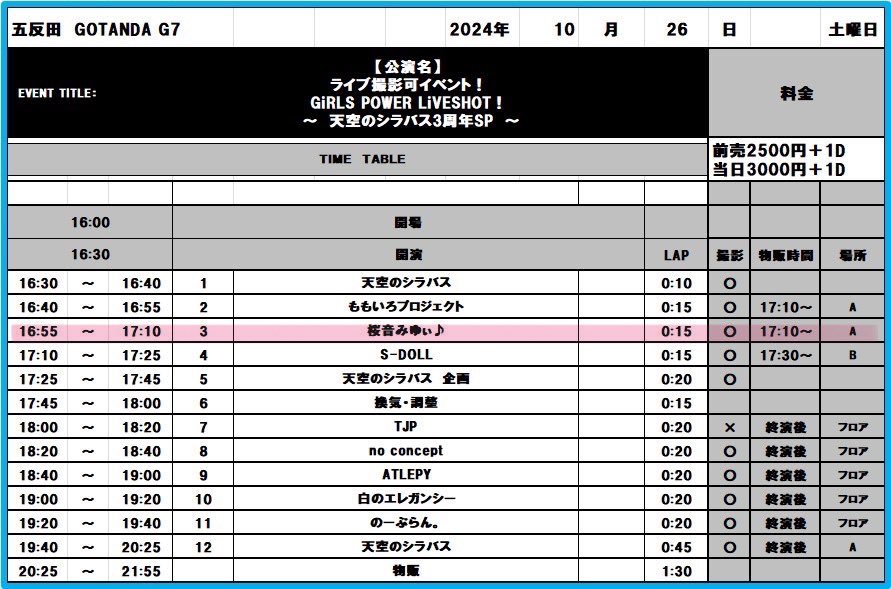 10/26(土) GiRLS POWER LiVESHOT! ~天空のシラバス3周年SP~