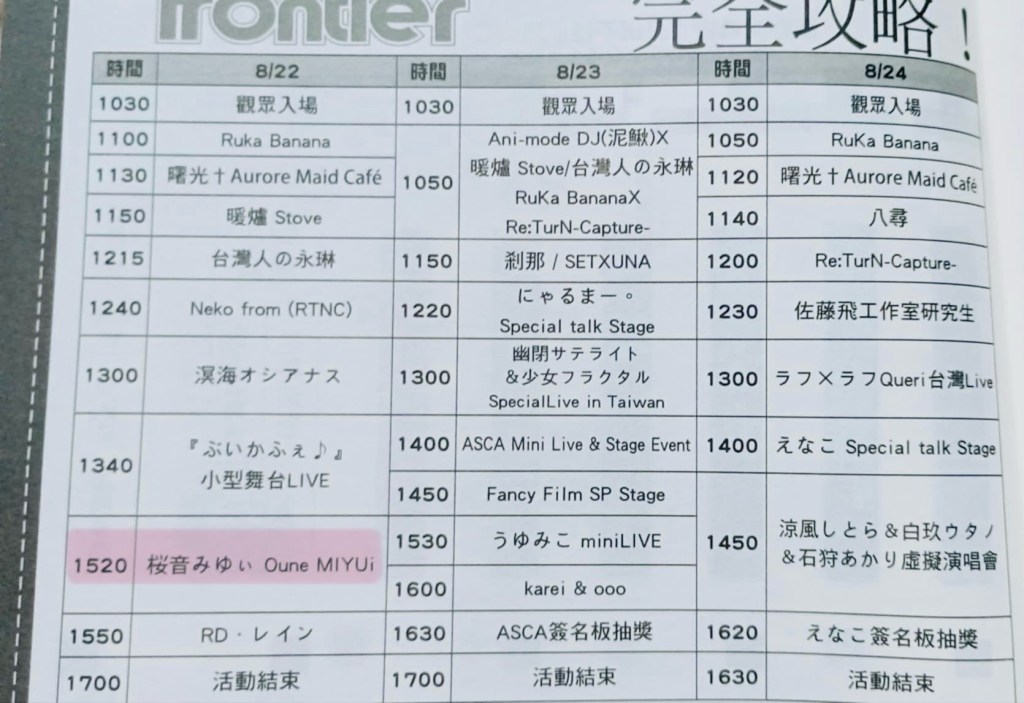 8/22みゆぃ台湾🇹🇼ライブ情報 Posted byMIYUiみゆぃ♪16 Aug 2025Posted inみゆぃ♪ ライブ情報 \台湾1番人気なコミケイベントに出演します♪/ 8/22(金)FANCY FRONTIER開拓動漫祭FF45会場:花博爭艷館(台北市玉門街1号) ライブ🎤15:20~15:50特典会は後日お知らせします! コミケ 台湾コミケ FF45 FANCYFRONTIER Share this: Share on X (Opens in new window) X Share on Facebook (Opens in new window) Facebook Like Loading...