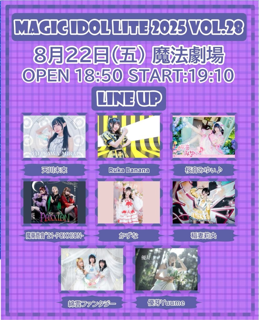 8/22(夜)みゆぃ台湾🇹🇼ライブ情報 Posted byMIYUiみゆぃ♪17 Aug 2025Posted inみゆぃ♪ ライブ情報 8/22(金)✩MAGIC IDOL LITE 2025 VOL.28✩ 時間:OPEN 18:50 START 19:10会場:魔法劇場(台北市武昌街二段21号2階)料金:500元(当日現金でお支払いです) お目当て特典🎁特典券x2+? Share this: Click to share on X (Opens in new window) X Click to share on Facebook (Opens in new window) Facebook Like Loading...