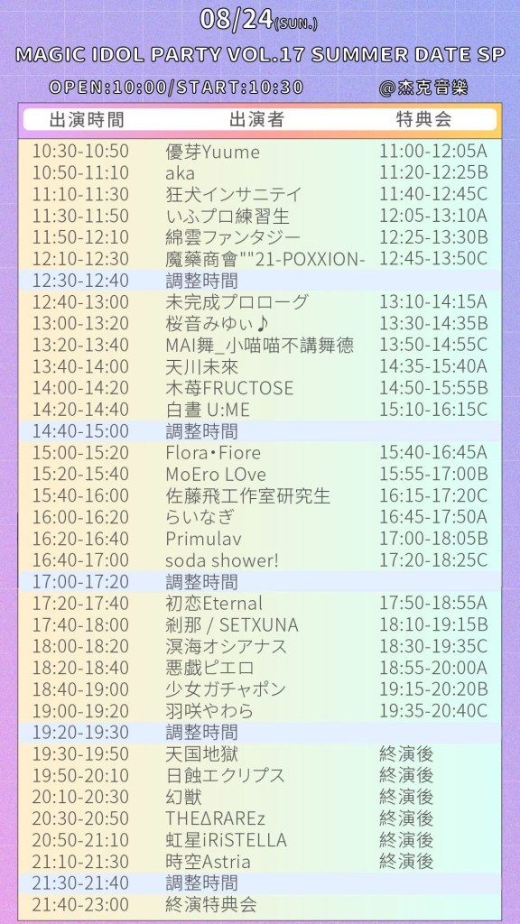 8/24(日)✩MAGIC IDOL PARTY VOL.17 SUMMER DATE SP✩