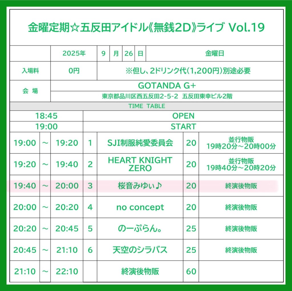 9/26(金)無銭ライブ 五反田アイドル ライブVol.19