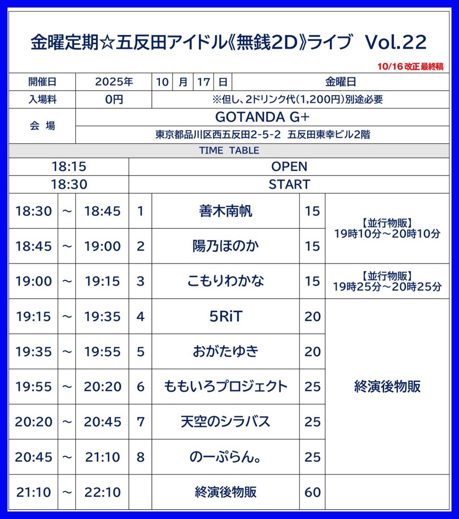 金曜定期☆五反田アイドル《無銭2D》ライブ Vol.22