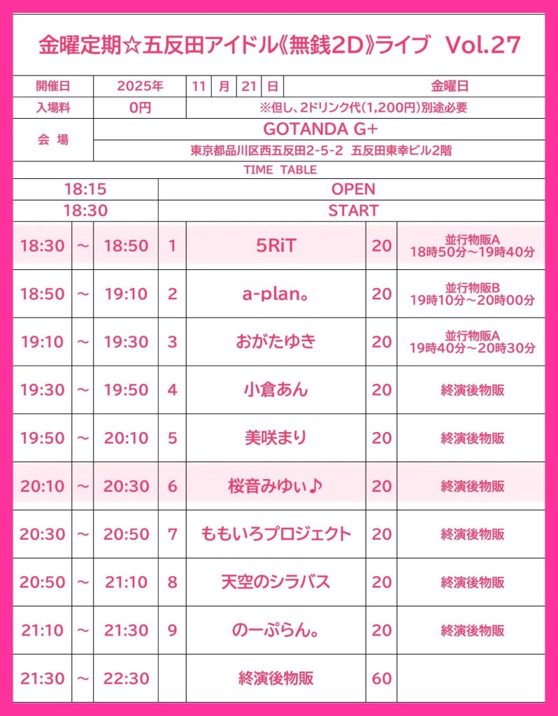 11/21(金)無銭‼️五反田アイドルライブVol.27