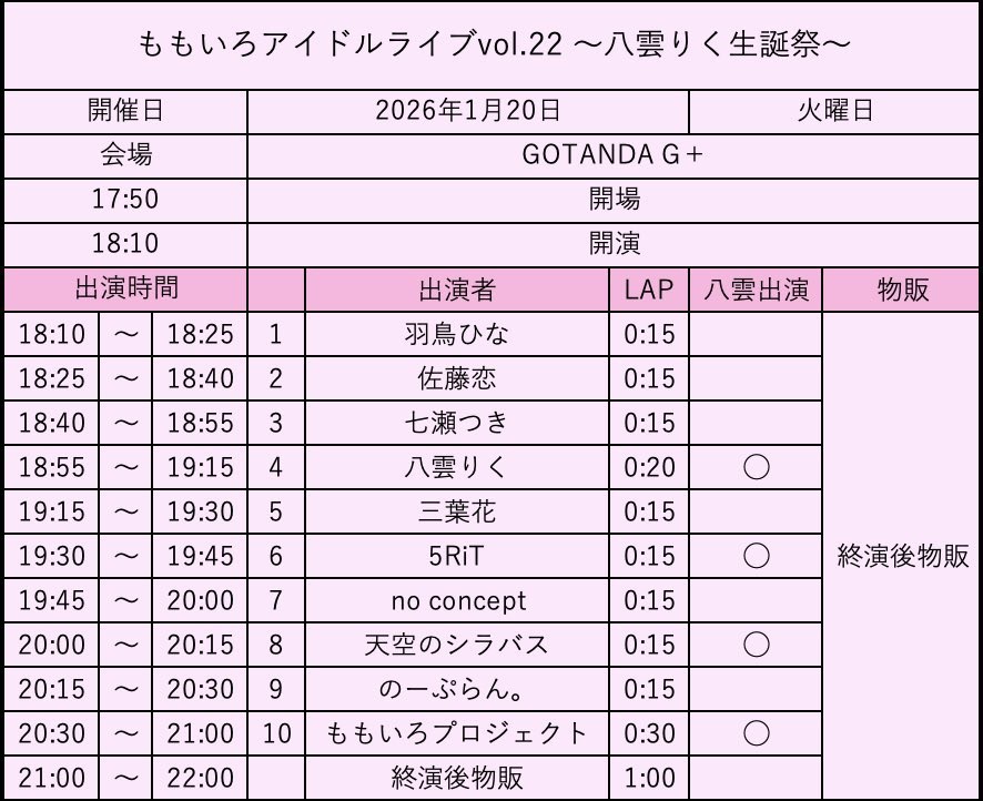 1/20(火)ももいろアイドルライブvol.22