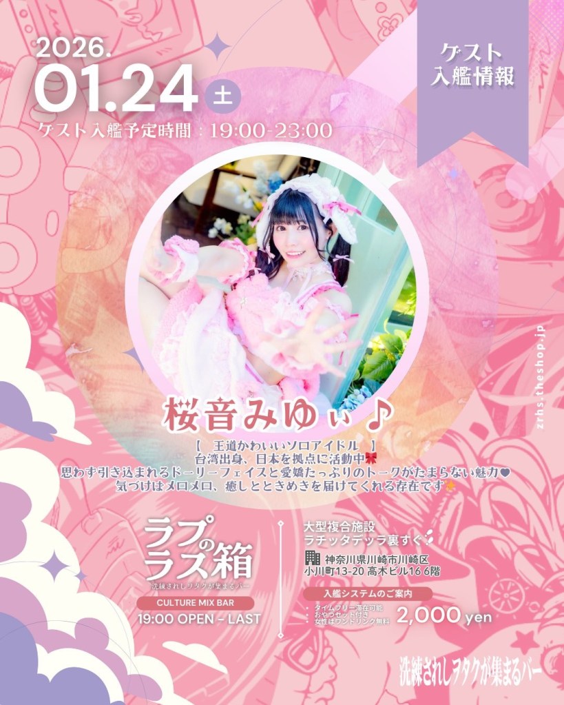 1/24みゆぃイベント情報 Posted byMIYUiみゆぃ♪24 Jan 2026Posted in桜音みゆぃ♪情報 1/24(土)のイベントです!川崎運用のラプラスの箱に入艦いたします! まったり話せるからあいにきてね♪ あおにゃんに描いてもらったみゆちゃんのイラストステッカーもゲットしてね🩷 Share this: Share on X (Opens in new window) X Share on Facebook (Opens in new window) Facebook Like Loading...