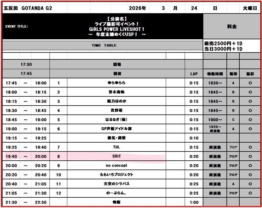 3/24(火)GiRLS POWER LiVESHOT!